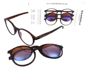 Gamswild 3 in 1 Reading Glasses marrón – Stylish accessory with two additional magnetic clips as sunglasses and blue light filter lenses.